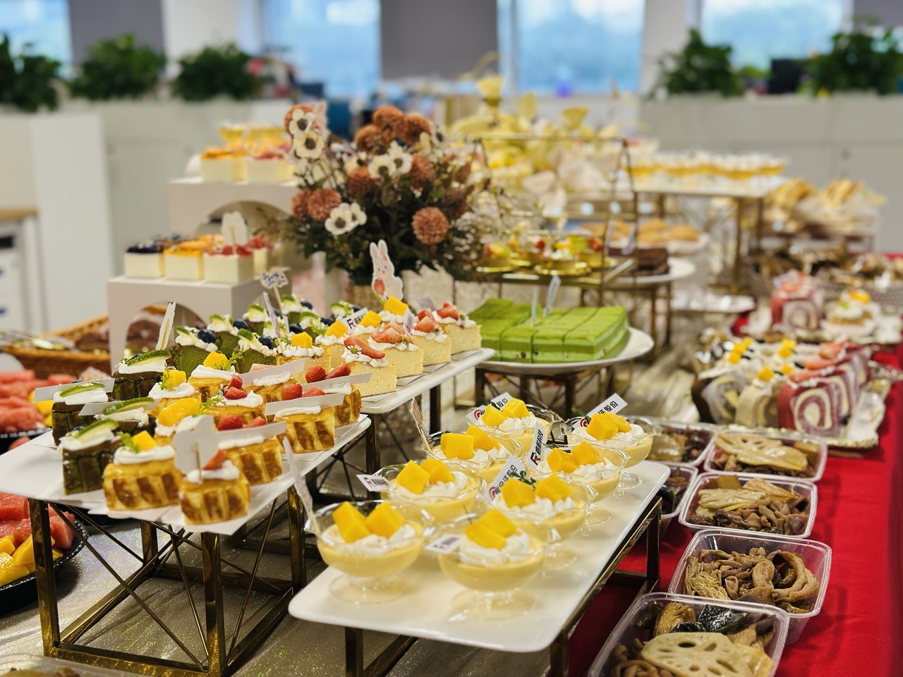 当小伙伴们步入精心布置的活动区,一份专属定制的月饼礼盒便送到了手中,包裹着的是公司对每一位伙伴及其家人最真挚的祝福。而这,仅仅是惊喜的开始。琳琅满目的精致下午茶歇,瞬间点燃了味蕾,大家品尝着甜点,分享着美味,欢声笑语不绝于耳。